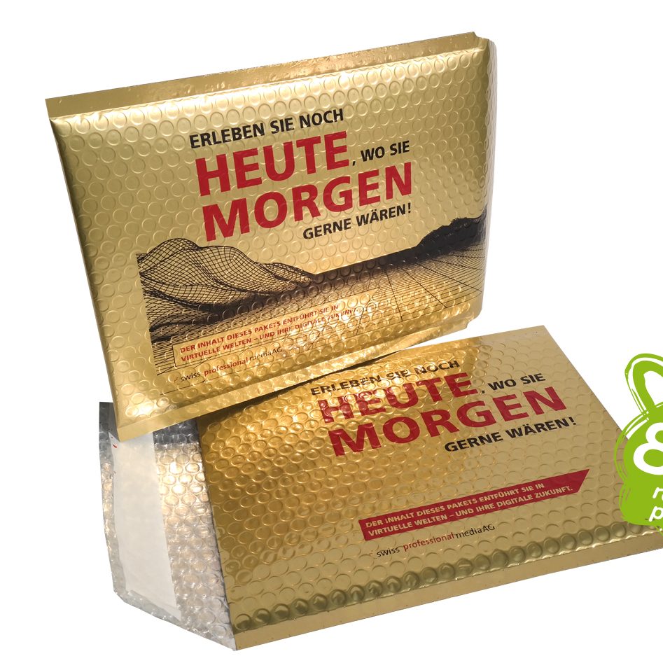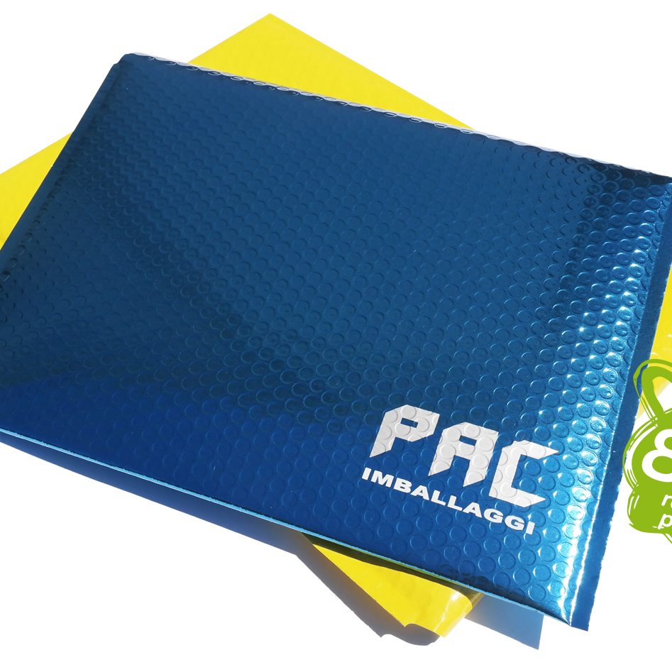 Bubble mailer made from +80% recycled plastics. Thermal and protective, can be customized on size and print. Print in any Pms color in silkscreen over our background colors or full colored and high quality images in flexoprint. Choose button closure to be reusable, or hot-melt glue for a strong closure for shipping. 100% recyclable.